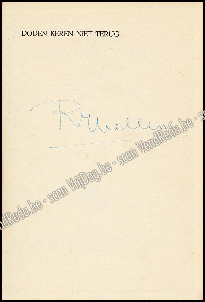 - Doden keren niet terug is een roman van René Wellens, gepubliceerd in 1953. Het volgt op zijn bekendere werk Het aardse vagevuur (1952) en behandelt, net als zijn andere werk, thema's rondom de menselijke ervaring in de nasleep van de oorlog. René Wellens was een Vlaamse auteur en redacteur, vooral actief in het midden van de 20e eeuw. Hij was verbonden aan de redactie van de krant Het Laatste Nieuws. Zijn bekendste werk is de roman Het aardse vagevuur (1952). In dit boek beschrijft hij de ervaringen van Paul Lanckaert, die na de Tweede Wereldoorlog werd geïnterneerd vanwege zijn activiteiten als tewerkgestelde arbeider in Duitsland. In 1937 publiceerde hij het werk Meer dan een kwart Eeuw Stadsbeiaardier, over de beiaardtraditie in Diest.