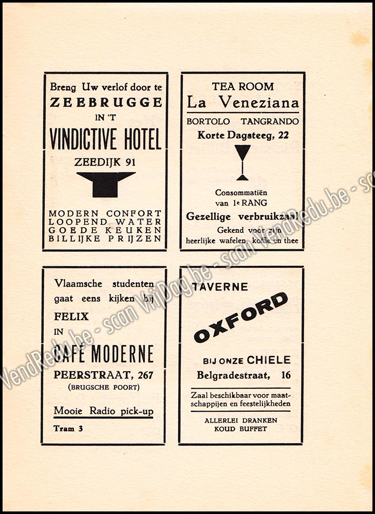 - Een boekdeel van 320 bladzijden: jaarverslagen, inlichtingen over heel het studie- en gezelschapsleven aan de Gentsche Universiteit, verzen, proza en teekeningen van studenten en oudstudenten. Deze almanak staat in het teeken van Prof. Frans Daels, die hier gehuldigd wordt door Prof. Dr. Van Rooy van Amsterdam, Cyr. Verschaeve, Dr. J. Goossenaerts, Pater Callewaert, A. De Caluwé.