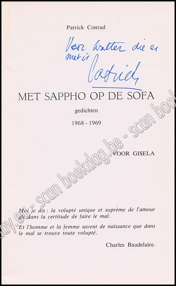 - Met een korte opdracht aan Walter (Vandenbussche) en gesigneerd door Patrick Conrad.