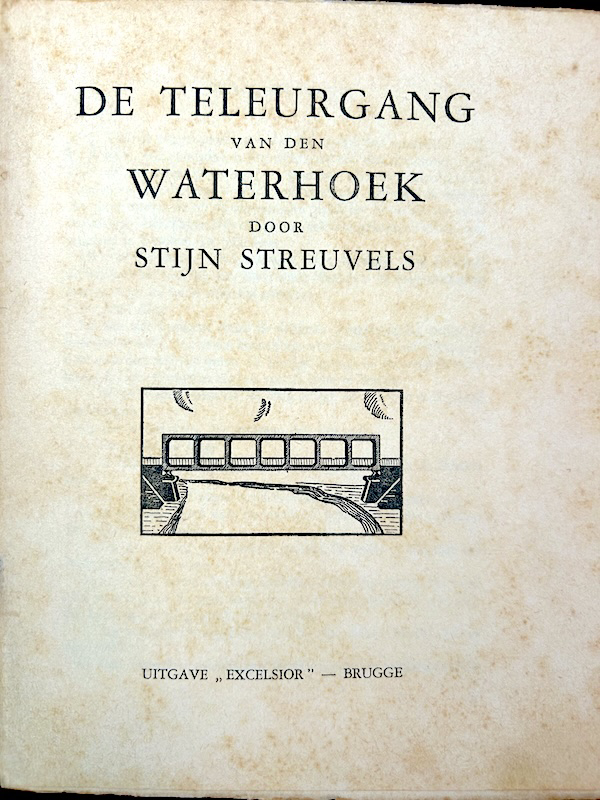 Colofon: Deze uitgave werd gezet uit de Garamond letter , Corps 12 en gedrukt op de persen ter drukkerij “Excelsior” te Brugge, den 1en November van ’t jaar 1927. P, genummerd van 1 tot 30, Paul Lateur teekende den omslag. Er werden 30 exemplaren gedrukt op Hollandsch Van Gelder papier; 14 ex. op Van Gelder “Antique” genummerd van I tot XIV en 6 ex. op Van Gelder “Ossekop” genummerd A tot F.