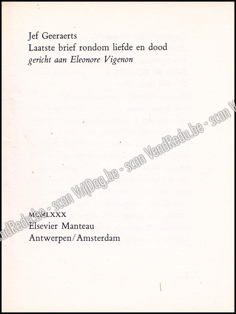 Laatste brief rondom liefde en dood. Gericht aan Eleonore Vigenon
