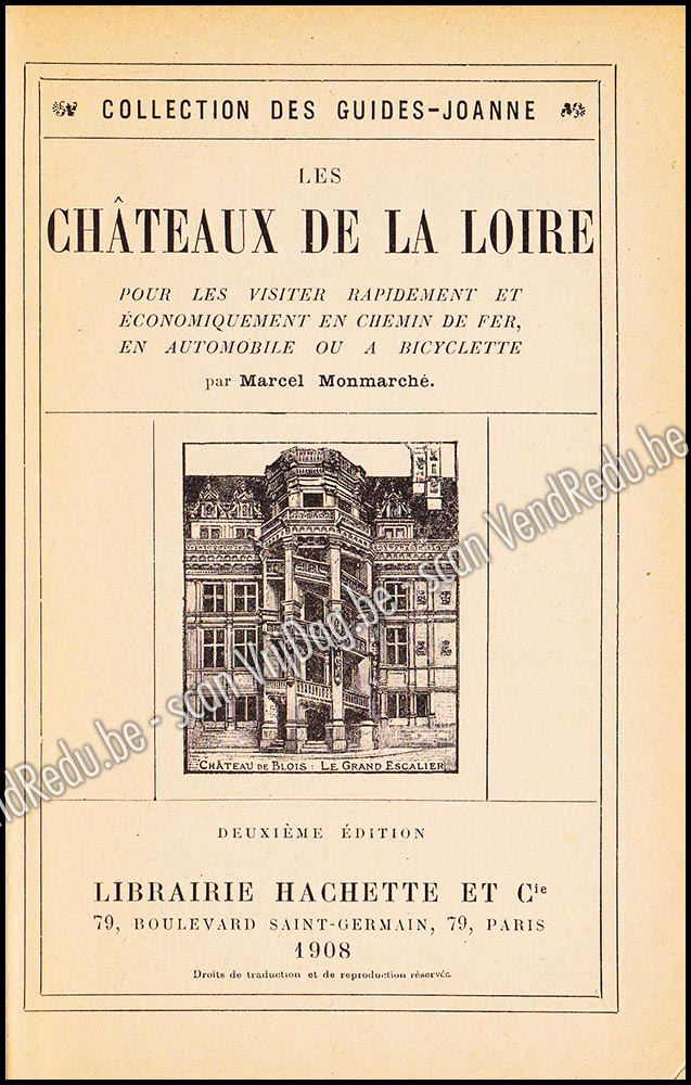 - Cet ouvrage est un guide de voyage bien connu, faisant partie de la célèbre collection "Les Guides Bleus" de la maison d'édition française Hachette.Guide de voyage illustré, ouvrage de référence historique et touristique.Contenu: Le livre est un guide détaillé qui emmène le lecteur le long des célèbres châteaux de la vallée de la Loire (tels que Chambord, Chenonceau, Amboise, Blois, Azay-le-Rideau). Il comprend des descriptions historiques et artistiques, souvent illustrées de gravures en noir et blanc, de photographies et de cartes détaillées.Période de publication: Il existe de nombreuses éditions différentes de ce livre, datant du début au milieu du XXe siècle (par exemple, des éditions de 1908, 1936, 1938).Pertinence et disponibilitéCe livre spécifique est un guide de voyage classique et vintage, apprécié des collectionneurs de livres anciens et des amateurs du patrimoine français. Il offre un aperçu historique intéressant de la manière dont ces châteaux étaient présentés aux voyageurs dans la première moitié du XXe siècle.- Illustré de gravures en noir et blanc et de cartes en deux couleurs.