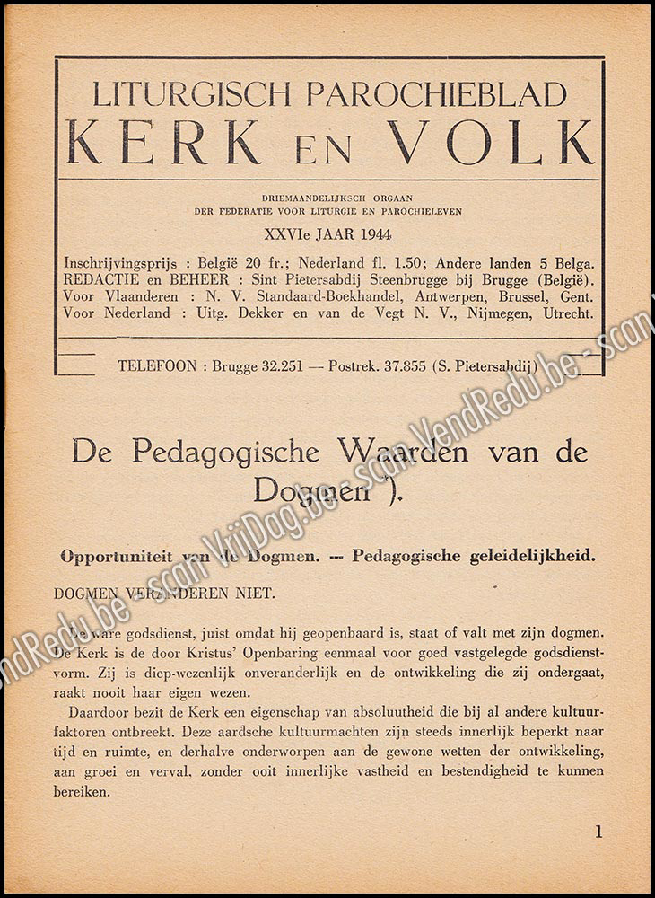 Liturgisch Parochieblad Kerk en Volk. XXVIe jgn 1944-1945. 4 nrs volledig
