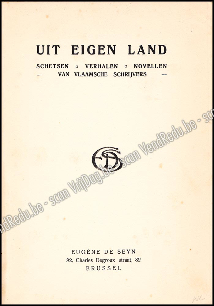 - Hier is het eerste deel van een keuze uit prozawerk van vlaamsche schrijvers, bijzonder geschikt als lectuur voor jongeren.Bij het samenstellen dezer bladzijden hadden wij voor doel, gezond geestesvoedsel te verschaffen aan de jeugd.Het lag evenwel niet in onze bedoeling werk te leveren van alle vlaamsche schrijvers, maar alleen bruikbare leesboeken te vormen voor huis en school.Men zoeke hier niet naar éénheid van spelling en stijl; we lieten aan elk stuk zijn eigenaardigheid van schrijf- en verhaaltrant.Wij danken hier van harte al dezen die ons zoo bereidwillig hunne medewerking verleenden, stellend van het algemeen. hunne kunst en hun talent ten dienste.Wij wenschen dat deze uitgave moge bijdragen tot nadere kennismaking der werken van de hierin opgenomen schrijvers, en steeds meerdere belangstelling en waardeering wekken voor onze zoo bloeiende letterkunde.- INHOUD:DOMIEN SLEECKX. Jol. [een humoristische hondengeschiedenis]HUGO VERRIEST. Twee Typen.TEIRLINCK-STIJNS. Verwoest Geluk.K. H. DE QUEKER. Busschen maken.HILDA RAM. De Spaarpot.CYRIEL BUYSSE. Twee Schetsen.EMIEL DE GRAVE. Op het Hulleken.- Samengesteld, gesigneerd en gedateerd door Eugène De Seyn.
